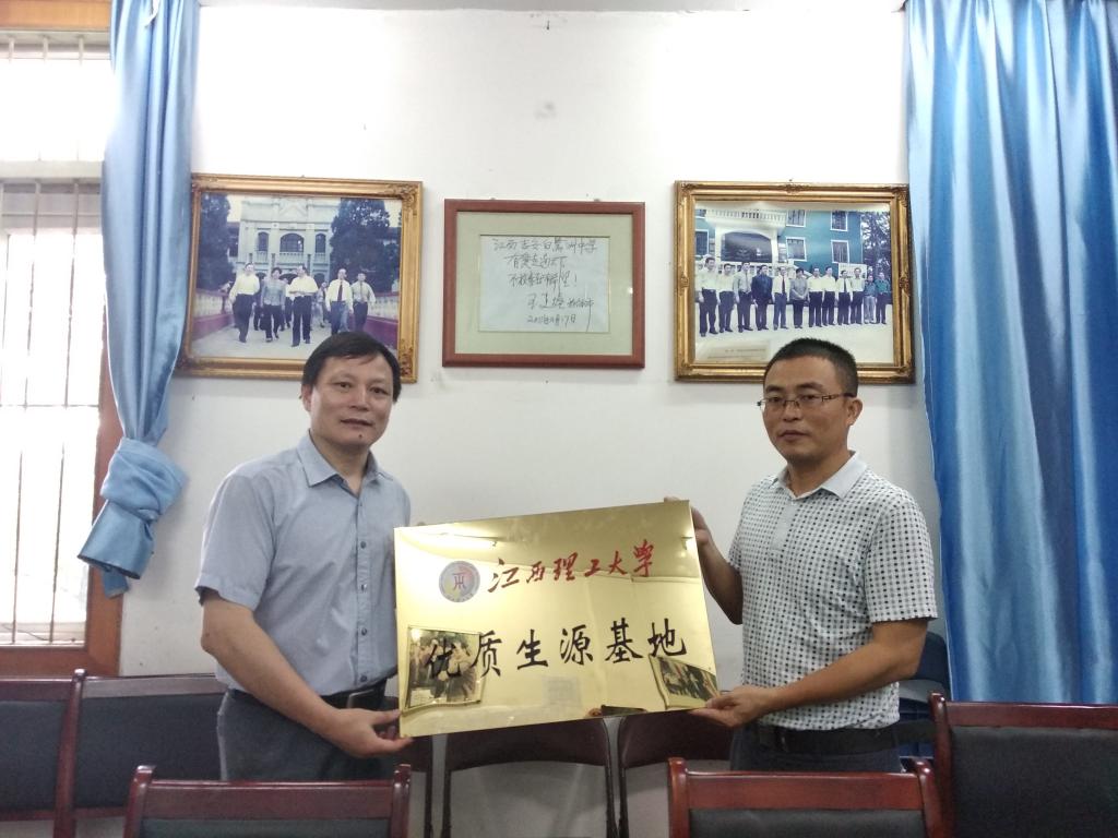 本网讯(徐缓)5月31日上午,我校优质生源基地签约暨授牌仪式在吉安七中隆重举行。我校信息工程学院党委书记黄支民、学工办主任兼团委书记王吉源、吉安七中常务副校长等相关老师出席仪式。