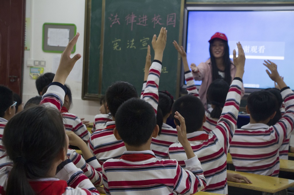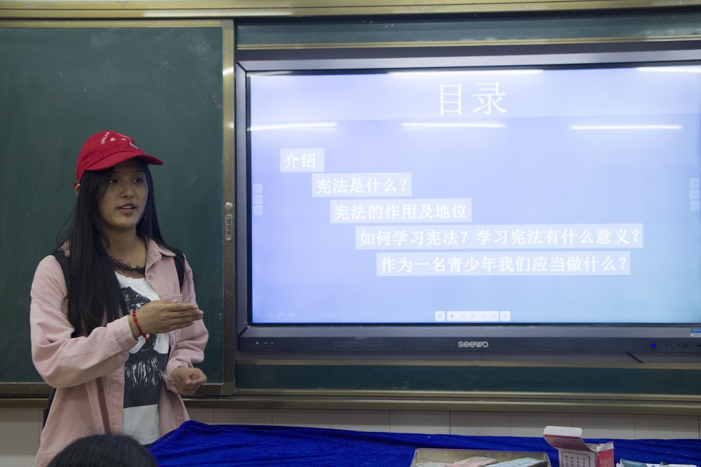 到达目的地后,志愿者肖微为厚德路小学六年级六班的五十余名小学生细心的讲解相关的法律小常识,逐步地让他们了解“什么是宪法”、“宪法的作用和地位是什么”、“如何学习宪法”、“学习宪法有什么意义”、“作为一名青少年我们应该怎么做”等一系列的问题。为了提高小朋友们的积极性,志愿者们制作了印有法律小知识或者小故事的卡通图片,以分发带有法律知识的卡通卡片的方式,吸引小朋友们的注意力,深度扩大此次活动的影响力。此外,志愿者们还结合小朋友们的爱好,设计收集了一系类动画图片、动画电影教育影片,以轻松的方式逐渐让小朋友们融入法律相关知识的学习中。活动后期,志愿者们还积极的和小朋友们互动,提问相关的法律问题,并给予奖励,将现场的气氛引向了高潮,现场掌声雷动。