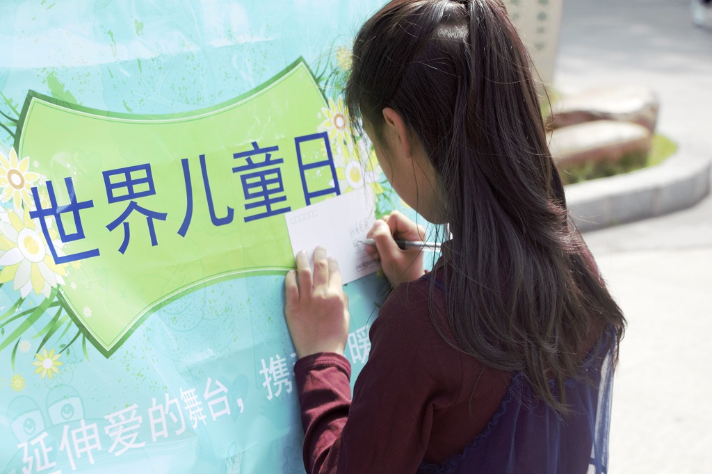 本网讯(邓潮)“我不希望世界再有战争。”一个小姑娘在明信片上如是写道。4月22日,是2018年世界儿童日,为让更多的人关注促进儿童保护、福利和教育等事业的发展,同时号召全世界的集体和个体,注意对儿童的关心和教育。bt365体育娱乐于当天在南门广场举办“延伸爱的舞台,携手温暖世界”主题活动。