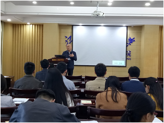 会议最后,信息工程学院副院长黄学雨对此次民主测评大会做了点评。黄院长对本次会议的组织形式和会议内容给予了肯定,黄院长表示,每位参与测评的党员同志都很真诚、很实际,也很一针见血,自评和互评都达到了效果。同时,黄院长也指出了本次会议的不足,会议对于时代背景的显现度还不够充分,以后的会议应当加强对时效性的体现。最后,黄院长针对本次会议中各位党员提出的普遍问题给出了答案,黄院长说,大多数党员同志存在的懒散、生活作息不规律的问题,归结到一点是由于目标的不明确,每位党员都应该时刻清楚自己的目标,把大目标切割成一系列可实现的小目标,并对自己设定要求去完成,才能一步一步走向成功。